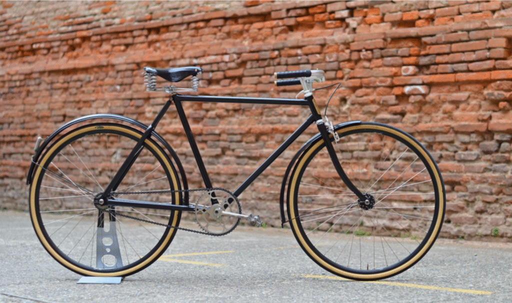 La remise au goût du jour pour Christopher avec un vélo des années 10-20.