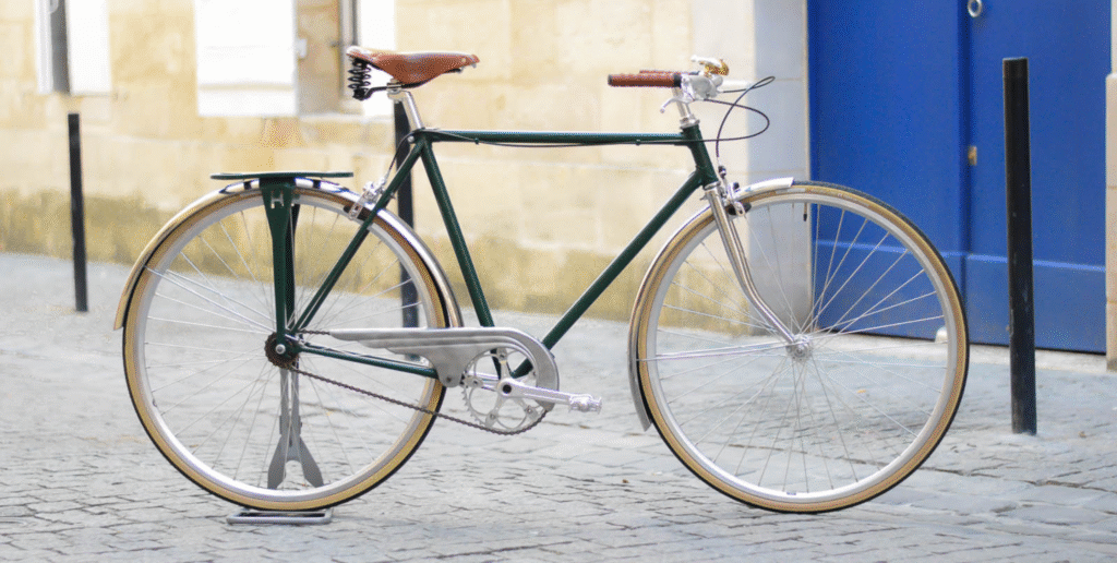 Remise à neuf d’un ancien vélo de ville homme avec son beau vert anglais.