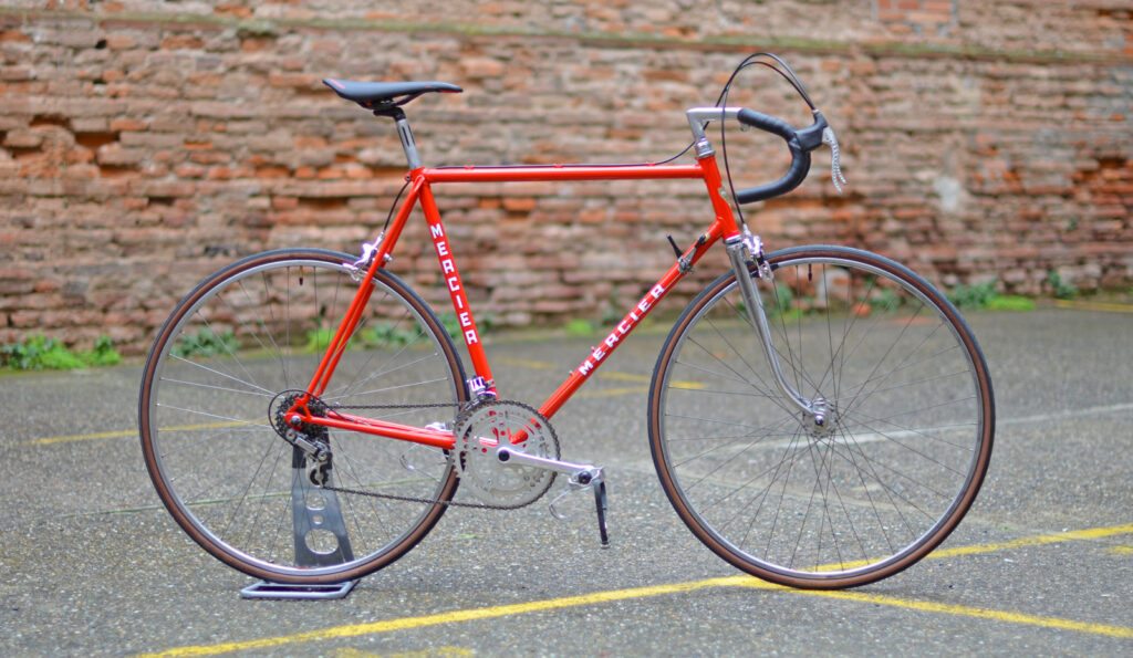 Rénovation d’un vélo de route en acier de la marque Mercier. Sur ce vélo, nous avons refait une peinture époxy avec une couleur rouge brillante. Des autocollants ont été reposés pour se rapprocher au plus proche de la version d’origine. Après un remontage complet du vélo, le voilà prêt pour arpenter de nouveaux les cols des Pyrénées.