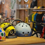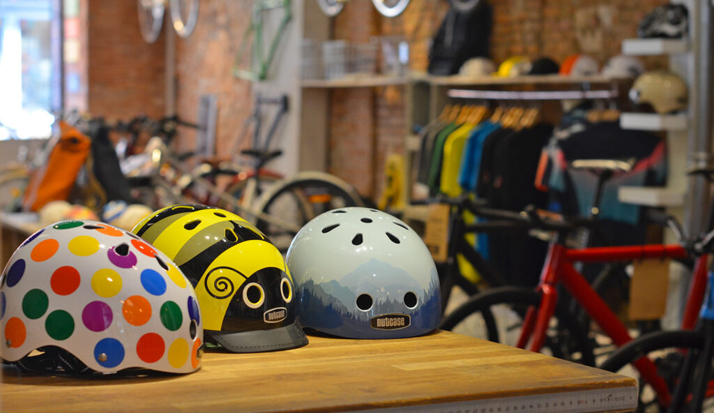 Casques enfant et adulte Nutcase : 70€ enfant, 80€ pour les grands. Beaucoup de coloris sympa ! Avec visière escamotable.