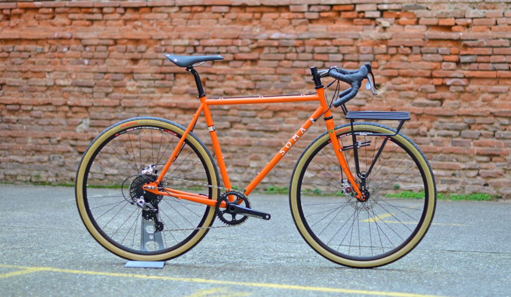 Montage pour Pierre d’un vélo gravel sur un Soma Wolverine Avec sa selle Brooks cambium, le groupe Rival 1 et son rack soma deluxe, voici un vélo pour toutes les aventures.
