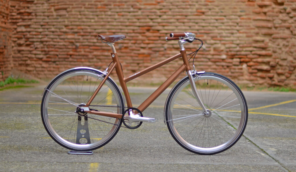 Schindelhauer Lotte, le vélo de ville pour femme parfait pour vos grands trajets quotidiens : chic, fiable et confortable avec une pointe de sportivité. lumières intégrées, selle Brooks, bref que du…
