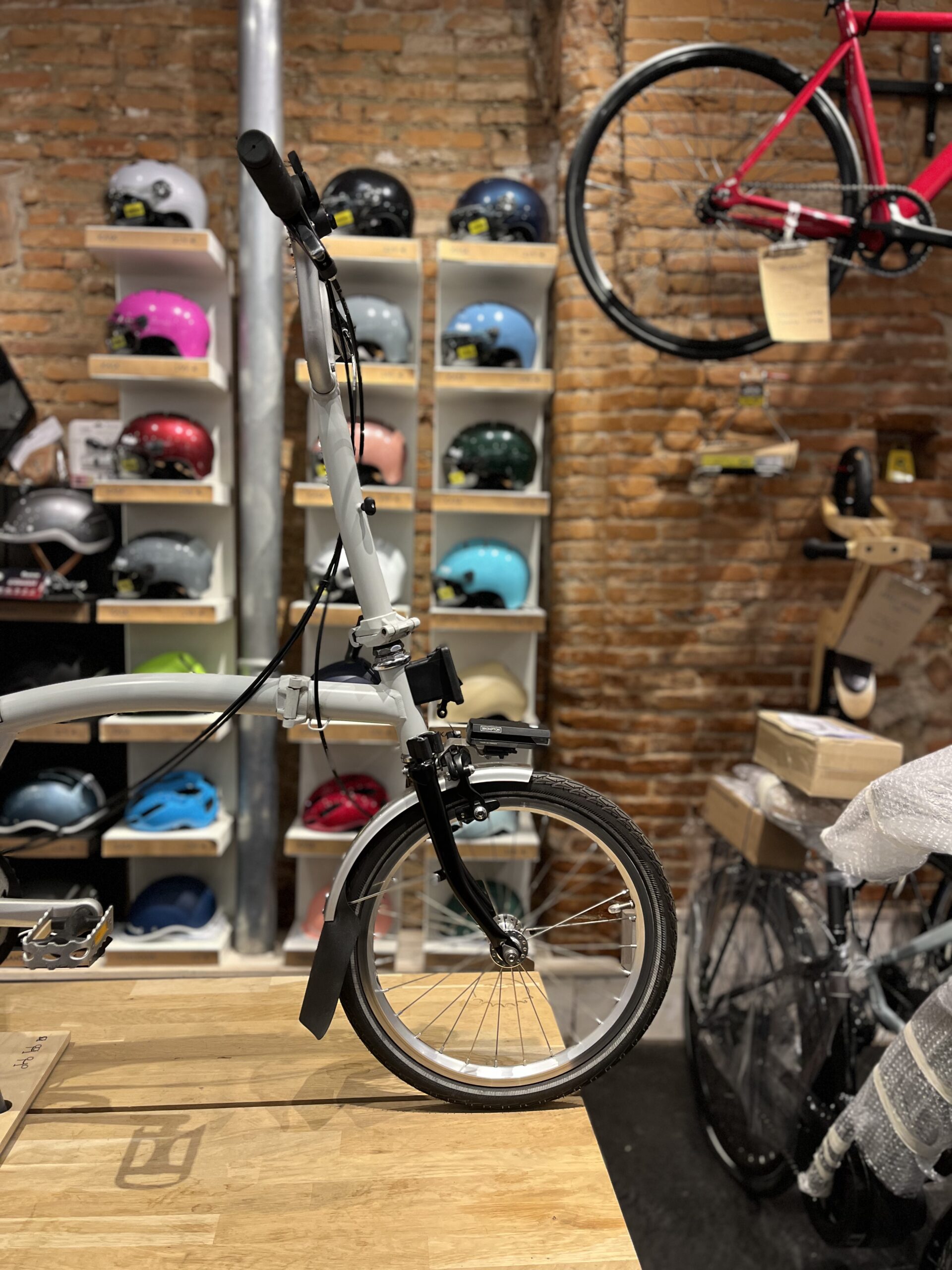 Équipé de garde-boue avant et arrière, d’un porte-bagage avant, d’un éclairage avant et arrière, d’une pédale rétractable et d’une selle issue du Brompton T Line, il devient un véritable compagnon de ville, prêt pour tous les trajets.