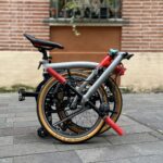 Les sacs Brompton se fixent rapidement et solidement au bloc porteur avant, garantissant stabilité et équilibre même chargé.